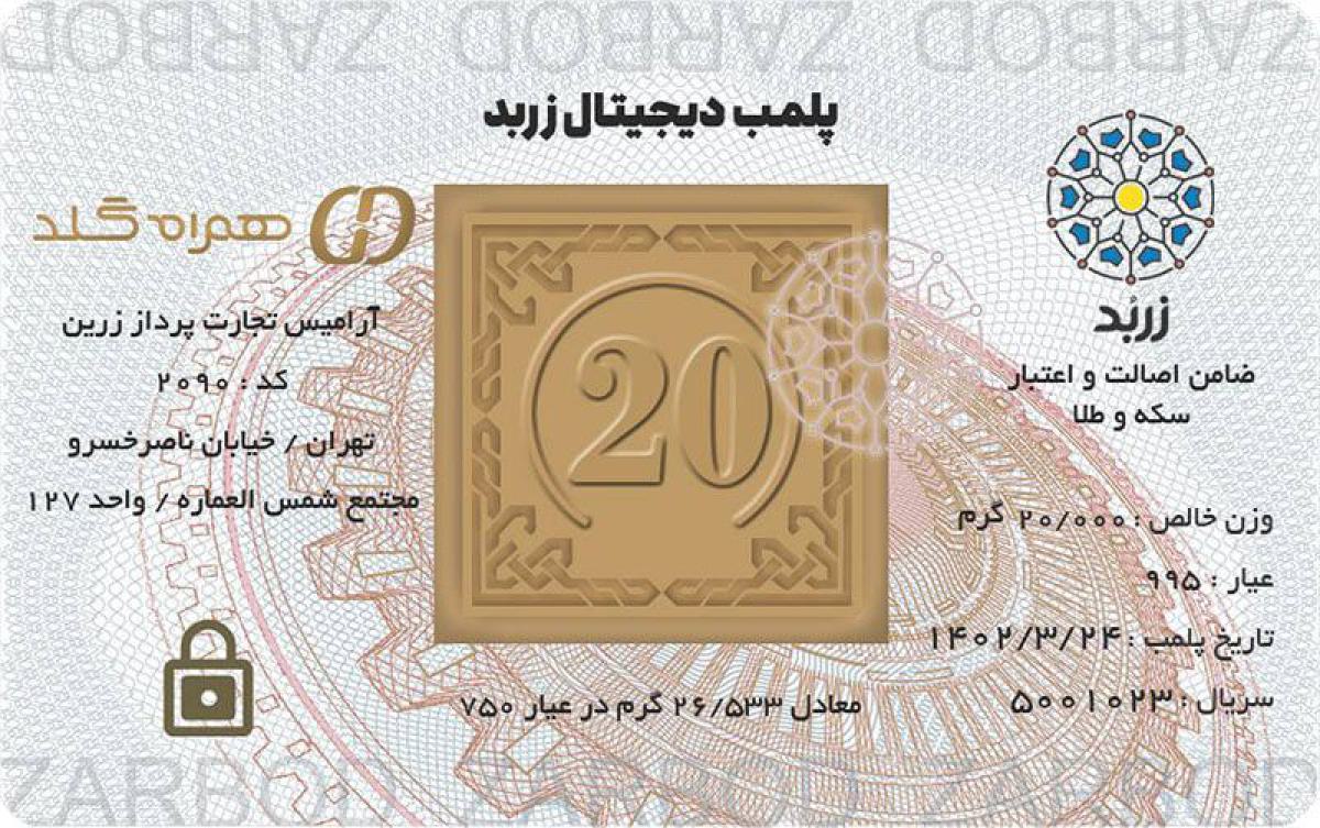 شمش طلا یک گرمی ۲۴ عیار زربد (۹۹۵) با پلمپ امنیتی دیجیتال